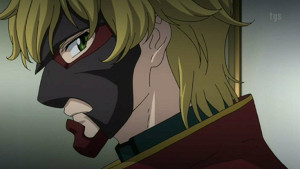 割れたガラスが邪魔をして顔が判別出来ないようですが(笑)、もしティエリアだとすると、なぜイノベイター達と一緒に居るのか気になります。