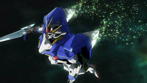 GN粒子の奔流が凄まじい! 正に「スーパーロボットたるガンダム」の正統系です。このスーパーロボット描写の有無で、作品の面白さが左右されるような気がします。