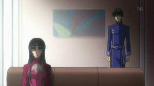 と同時に、ライルがソレスタルビーイングに接触したとの報告を受けるクラウスとシーリン。
